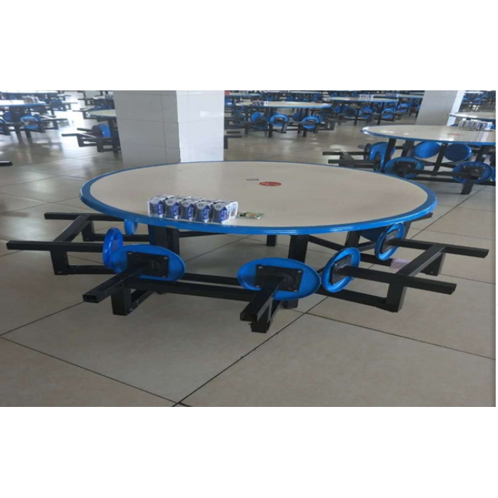 客户需求:圆桌面采用玻璃钢彩色边桌面,桌面厚度为3㎝厚。桌架采用规格为5㎝x 5㎝方管,壁厚1.5㎜优质焊管, 凳腿可翻折,焊管静电喷塑处理。 凳面采用直径30㎝玻璃钢圆凳面,要求结实,耐用。 圆桌直径为:150cm 圆桌桌面离地面高度距离为:76cm 圆凳凳面离地面高度距离为:40cm