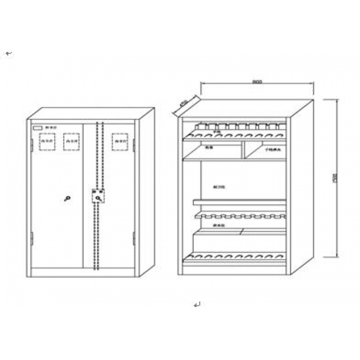 客户需求:1、枪柜铁皮厚度不小于1.5毫米; 2、加装2把机械锁、1把密码锁,不得少于4个锁点; 3、每个枪柜可容纳10支长管武器、10支短管武器、50个95式自动步枪弹匣、20个手枪弹匣、10把枪刺和10个手枪套; 4、内部枪支固定装置上下可调,牢固可靠; 5、柜体为军绿色; 6、参考尺寸为800*450*1500毫米。