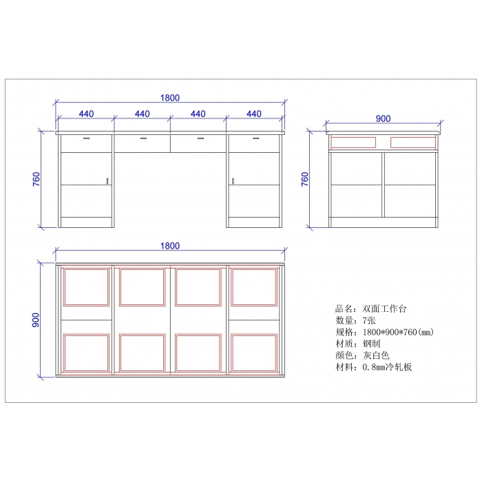 4411827,尺寸:1800*900*760,材质:钢制及三氰板,颜色:浅灰