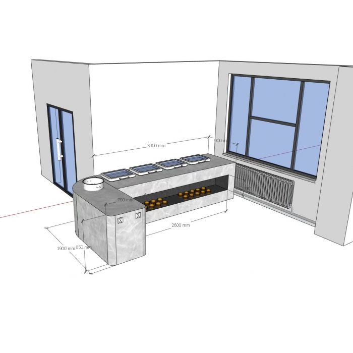 4412942,尺寸:3000*900*780/1900*700*850,材质:钢架+防火板柜体+石英石台面,颜色:防火板木质柜体塔克橡木,石英石颜色1013号