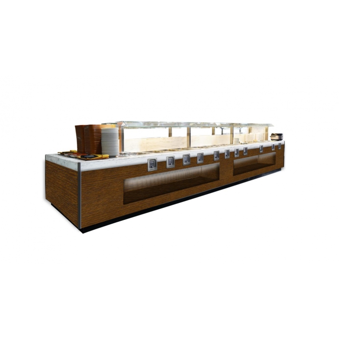 客户需求:1.台面:接触面为石英石,耐高温、抗划痕等特点,厚度40mm。内部骨架:采用40*40*3mm镀锌方管骨架,结实稳固,经久耐用,抗压能力强,内置12mm阻燃板基层,外框为E0级实木多层板,厚度15mm,E0级实木多层板, 2.柜体、置物面贴0.6mm 胡桃木木皮,条灯:柜体内部带有50mm宽线条灯,美观舒适,实用; 3.踢脚:采用不锈钢拉丝黑色亚光,质感舒适,踢脚高度80mm,美观醒目; 4.装饰灯:含台面以上装饰灯,灯柱为 50*50*3mm 镀锌方管,灯罩骨架 40*20 镀锌钢管, 顶板内置 12mm 阻燃板, 50mm 宽线条灯;
