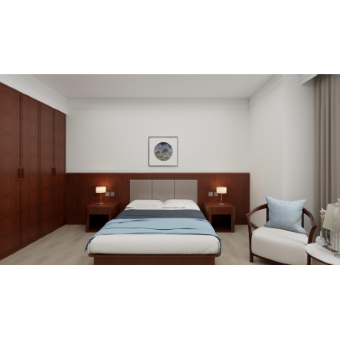 客户需求:1、E0级实木颗粒板,表面为三聚氰胺板饰面,上檐口厚度为型材线条,贴面弯曲防火板饰面, 2、床屏的上檐口厚度为;48mm ,采用型材线条贴弯曲阻燃防火板饰面,热弯后成型的L型状,有3*3MM的工艺缝,连接板链接。