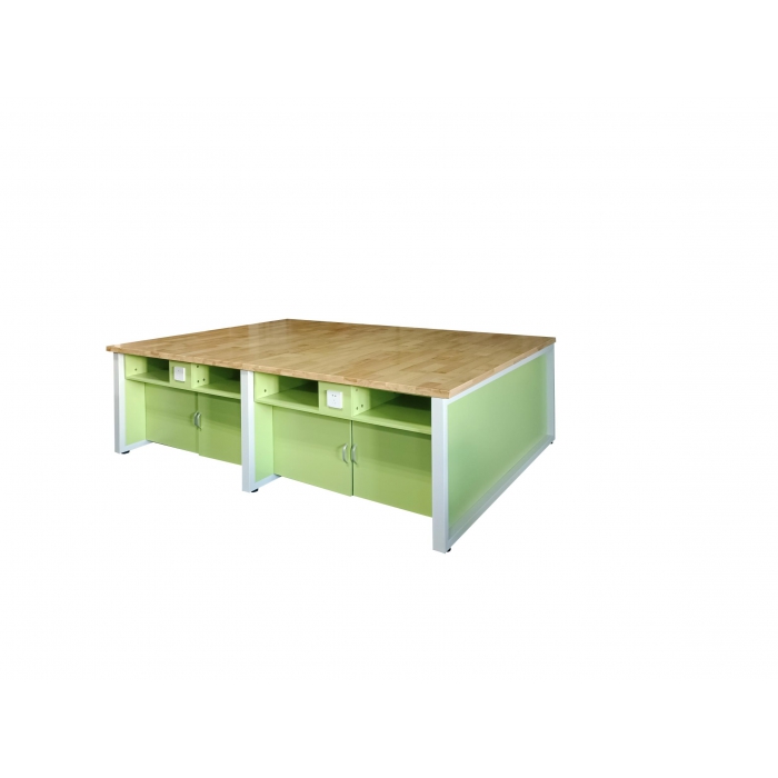 客户需求:规格:2400*1800*750mm (8人桌)。 1.台面:采用40mm樟子松实木板精致加工,上面铺设透明橡胶防护垫; 2.桌架:用60*40mm矩形钢管制作; 3.桌下柜:基材采用16mm刨花板制作,饰面采用三聚氰胺纸饰面,封边采用PVC封边,两侧均带有独立抽屉和柜子; 4.主控电源和插座到位,内带抽屉和对开门柜子; 5.预留多媒体设备(显示器,主机,多媒体设备)的位置。 6.配有桌面塔电式,配220V五孔插座。
