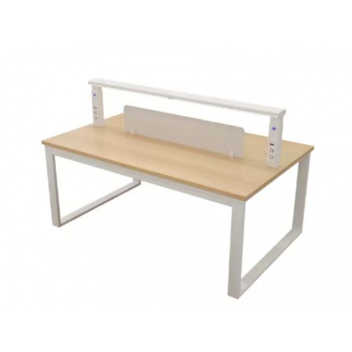 客户需求:1.台面基材:采用ENF级实木颗粒板,厚度≥25mm,外观要求单项评价均合格 2.饰面:采用优质防火板饰面,须符合GB/T 3324-2024《木家具通用技术条件》,人造板含水率<8%,外观要求:污斑同一板面外表,允许1处,面积在3m㎡~30m㎡内、应无明显皱纹、疵点,表面理化性能要求:软、硬质覆面,耐干热达到1级,耐湿热达到1级,耐划痕试件表面无整圈划痕; 3.封边:采用1.5mm优质PVC封边条, 4.桌架:采用优质钢制55mm×55mm×1.5mm三角形钢管,底部带调平脚,结构稳固;连接横梁采用50mm×25mm×1.5mm矩形钢管; 5.桌子设计阅览灯和电源插座,外形美观、大方,结构紧凑,稳定性良好; 6.全铝合金结构。 7.符合国家3c认证。 8.灯罩选用防眩透镜组合罩,护眼、无频闪、蓝光标准GR1及以下,可旋转调节光照角度。可满足看书阅读和使用笔记本电脑的不同需求。 9.使用4000k 高品质LED光源。可达到国家阅读室照度标准>500lxu; 桌面照度分布均匀。 10.立柱上设有220V插座和USB充口,满足师生使用笔记本电脑,手机充口等需求。 11.各座位都可调节灯光明暗,开关不影响领座。 颜色:白色钢架+6138枫木色防火板