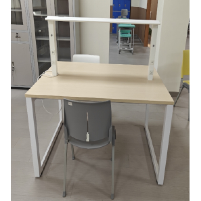 客户需求:带灯插座,桌面新靓木,桌架暖白,灯架白色 尺寸:1600*450*1050mm 材质:钢制+三聚氰胺板, 1.桌架:桌腿方框采用优质钢制55*55*1.5三角形钢管,底部带调平脚,结构稳固;连接横梁采用50*25*1.5矩形钢管; 2.桌子设计阅览灯和电源插座 3.全铝合金结构。 4.灯罩选用防眩透镜组合罩,护眼、无频闪、蓝光标准GR1及以下,可旋转调节光照角度。可满足看书阅读和使用笔记本电脑的不同需求。 5.使用4000k 高品质LED光源。可达到国家阅读室照度标准>500lxu; 桌面照度分布均匀。 6.立柱上设有220V插座和USB充口,满足师生使用笔记本电脑,手机充口等需求。 各座位都可调节灯光明暗,开关不影响领座。