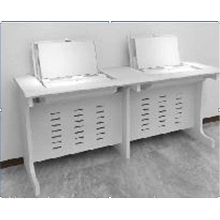 4.桌腿选用≥1.0mm 厚高强度冷轧钢,采用双层钢板成型,每个人位带站脚,结构结实耐用,经过酸洗、磷化、防腐、除锈化处理厚静电喷涂;