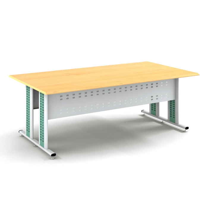 5111977,尺寸:1600*800*760,材质:桌面为榉木色防火板,架子为钢制,颜色:桌面为榉木色防火板,两长边为压嘴边,架子为浅灰色套绿色网格。