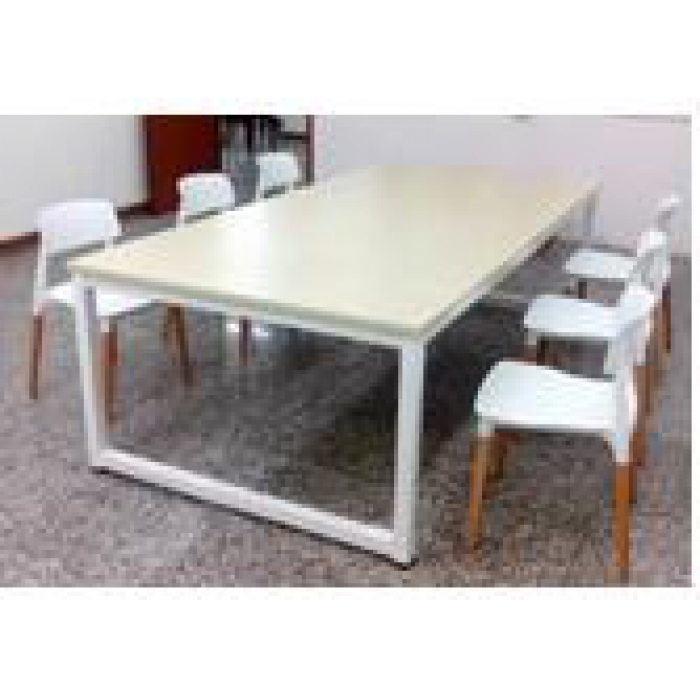 5112940,尺寸:1800*900*760,材质:钢制三角椅架,桌面刨花板贴防火板。,颜色:白色桌架、白枫色桌面