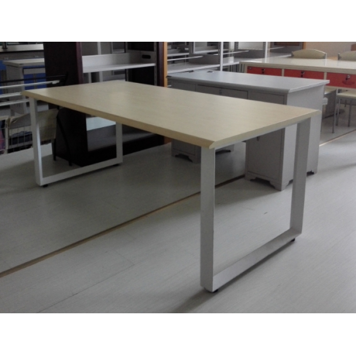 5112945,尺寸:1400*800*760,材质:钢制桌架,25mm三氢板桌面。,颜色:白色钢制桌架,8011-1G三氢板桌面。