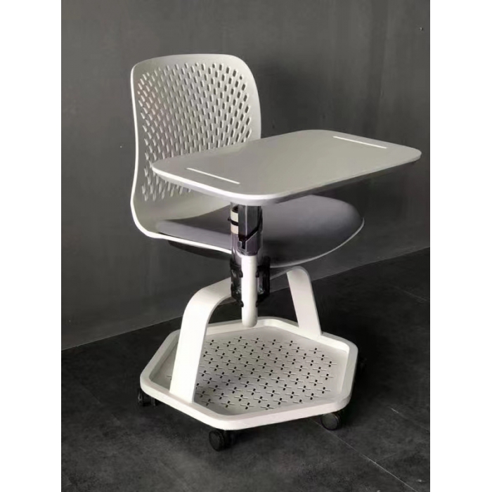 5299949,尺寸:常规,材质:网眼布+PP材质,颜色:白色胶背+灰白色坐垫,白色转杆+白色水杯架+白色中纤写字板+白色座底壳+底盘+白砂书网架+50MM黑色静音轮