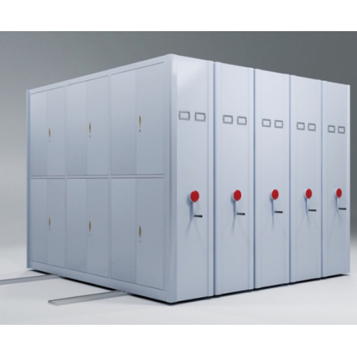 1、采用冷轧钢板。摇手体:七字型铝合金摇把。手柄采用铝合金整体铸压成型,其结构为棘轮或挂钩自动挂、脱挡,停用后摇把可自行停于垂直位置,可避免通道障碍,摇动任意一列不会带动其它把手。传动速比 1:8,架体空间利用率≥82.8%。2、立柱要求:材料采用≥1.5 厚优质冷轧钢板,架体采用双柱式,辊压成型截面尺寸≥53*39mm;正面宽≥53mm,压不少于 2 根圆弧筋及回型花纹,侧面宽≥39mm,压不少 2 根圆弧筋,内侧面为一次成型闭口半圆弧设计,有效增强立柱柔韧度、承重能力及架体稳定性,立柱均匀冲孔,层距可按需调节。3、隔板:采用厚度≥1.0mm 冷轧钢板,正面压制六条圆弧筋。提供实物个板小样一块尺寸:长 500*宽 260mm。4、挂板:材料采用厚度≥1.0mm 冷轧钢板,挂板规格成型高度≥150mm。中间冲两个拉伸成型长圆孔,孔上下各压一条加强筋,提高挂板承重能力,挂板与立柱之间的连接方式采用十二挂扣连接,组装后平整、牢固;挂板越受力扣接越紧;十二挂钩挂板强度高,承重性能更优 越,挂板与立柱对接处更牢固。提供实物挂板小样一块尺寸:长545*宽150mm。 5、压型门板:门板采用厚度≥1.0MM冷轧钢板,压型门板,增加强度,更具美观,锁具开关流畅,安全性能高。顶板:采用厚度≥1.0MM 冷轧钢板,表面静电喷塑。防尘板:采用厚度≥0.8MM冷轧钢板,具有耐高温、耐腐蚀、防尘、防静电等特性。防鼠板:采用厚度≥ 0.8MM 冷轧钢板,板体光滑表面经过防腐处理,坚硬、美观,具有良好的防鼠、防尘、防静电、防潮功能。6、大力矩手摇式摇把:一体冲压式铝合摇手,无接缝焊缝,内圈有不少于十六条加强筋,表面钝化处理,钢琴烤漆工艺,兼具现代科技线条美感。外观造型如鲲鹏遨游,尾部为可折叠式,内装伸缩弹簧,兼具美观与实用于一体。使用时,往外轻拉即弹直;不使用时,将摇把提起往内折起即可。7、表面处理工艺过程如下:预处理一 60℃-80℃热脱脂一冷水清洗一除锈一冷水清洗一中和一冷水清洗一表调一 60℃-70℃热磷化一冷水清洗一 65℃-80℃热钝化一静电喷粉一 180℃固化。漆膜附着力达到 GB1720中的二级指标。塑膜厚度为 60-70µm,塑层防锈能力 20 年以上。所有标准件及紧固件均经氧化或镀锌处理。
