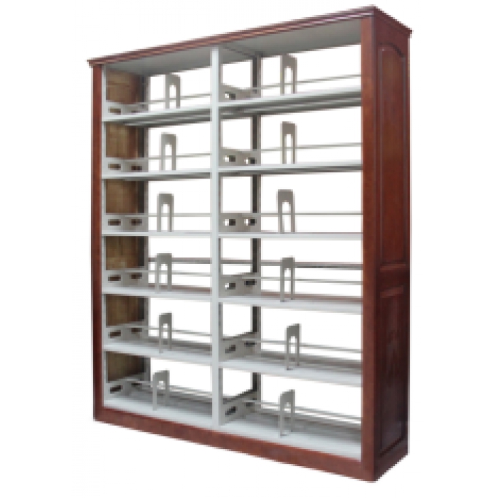 1.书架为6层双面存取书架,层距可调节,每面可使用空间319mm(高)*945mm(宽)*215mm(深),每层搁板均匀承重60kg,组装式结构,使用高强度螺栓连接;