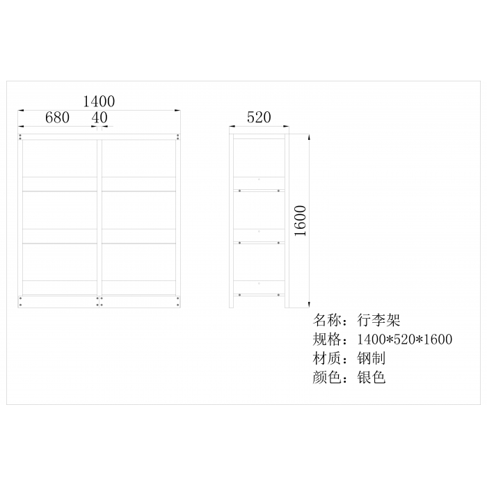 5411805,尺寸:1400*520*1600,材质:钢板,颜色:浅灰色
