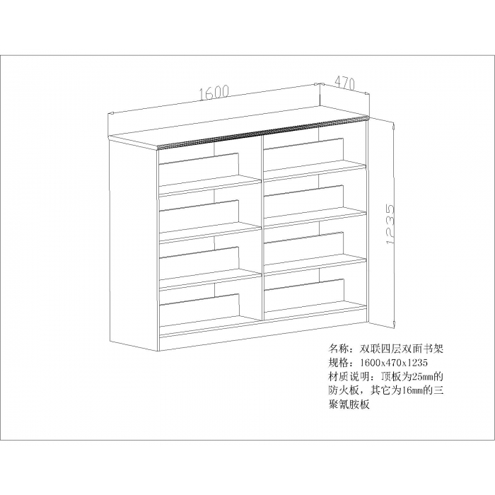 双联四层双面书架