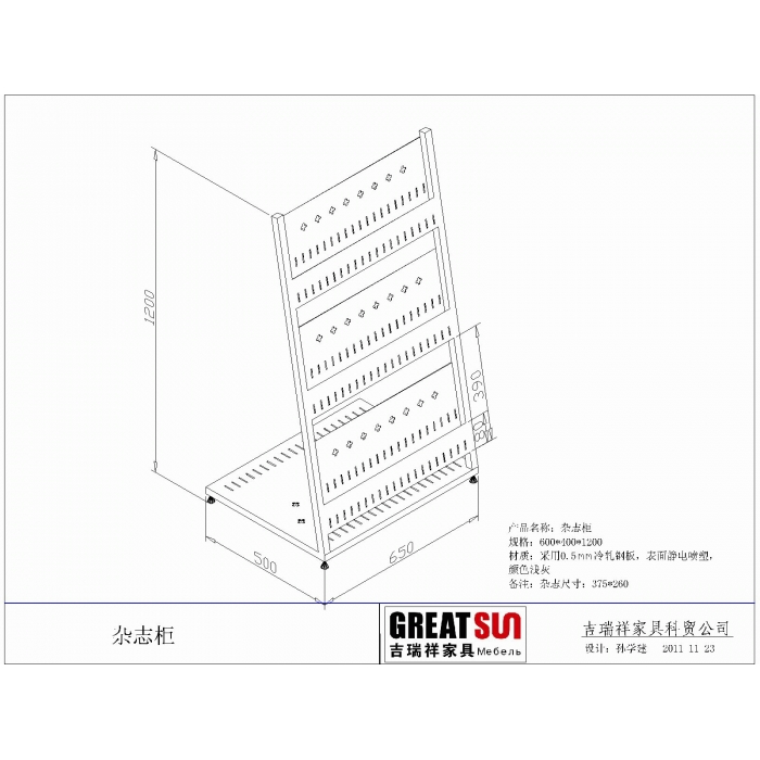 5611980,尺寸:650*500*1200,材质:0.5mm冷轧钢板,颜色:浅灰
