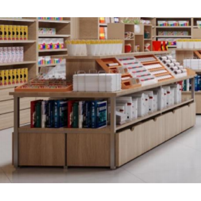 客户需求:尺寸:2400*1200*1150mm 材质:三聚氰胺板,厚度:台面板厚36mm、立板层板厚25mm、背板厚:18mm) 颜色:北欧云杉