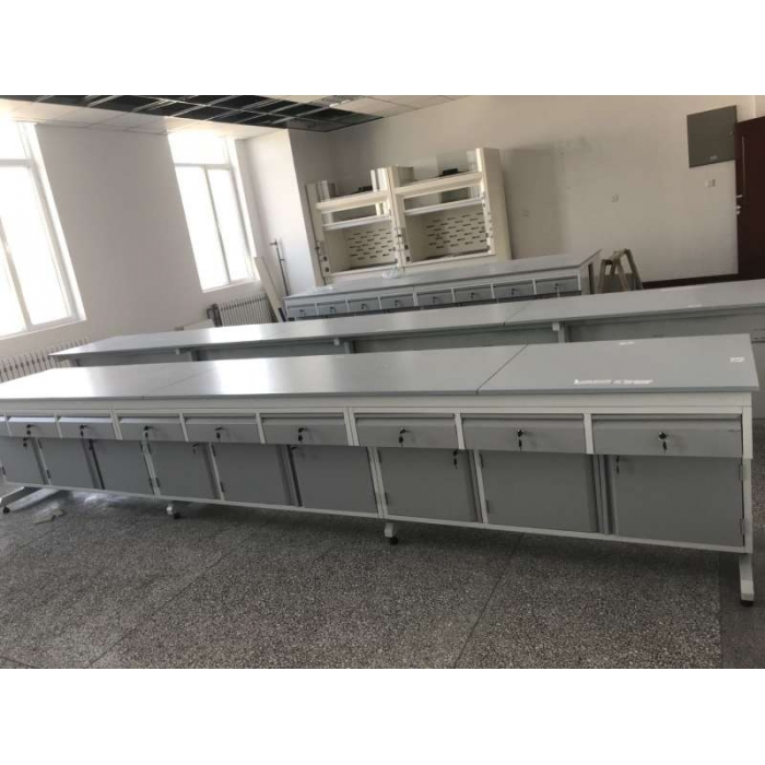 客户需求:检验科:台面需留有1个穿线孔,前后带柜门。