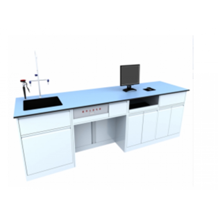 7111826,尺寸:3000*700*820,材质:1. 全钢结构 2. 台面:采用≥20mm厚一体实芯蓝色胚体实验室工业陶瓷台面,台面表面为耐腐蚀专业釉面。釉面和蓝色胚体(非后期染色处理)经高温烧结而成,釉面与胚体结合后不脱落、不脱层。彻底解决了传统陶瓷台面侧面因二次上釉存在的不美观、易脱落、不耐磨、不耐强腐蚀等一系列问题。并符合以下技术要求: ① 放射性核素限量要求:参照GB6566-2010《建筑材料放射性核素限量》标准,检测结果必须符合:内照射指数≤0.45;须提供检测机构出具的辐射限量检测报告为符合要求。 ②破坏强度要求:参照《陶瓷砖》附录G:干,颜色:浅灰色柜体,蓝色柜门,蓝色台面。