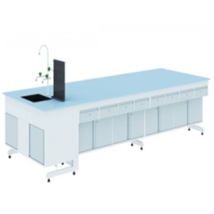 7111829,尺寸:3600*1500*820,材质:1. 台面:采用≥20mm厚一体实芯蓝色胚体实验室工业陶瓷台面,台面表面为耐腐蚀专业釉面。釉面和蓝色胚体(非后期染色处理)经高温烧结而成,釉面与胚体结合后不脱落、不脱层。彻底解决了传统陶瓷台面侧面因二次上釉存在的不美观、易脱落、不耐 2.钢架:采用C型和H型框架,主体结构以C型和H型钢架支撑,规格为国标40*60*1.2mm矩形钢管;钢件全部采用除锈防腐工艺、环氧树脂粉末静电喷涂,承重≥400kg/㎡,高温固化,提供着力高,耐划,耐酸碱,美观耐用; 3.柜体:采用1.0mm优质冷轧钢板,采用CO2保护焊,颜色:灰色柜体、蓝色台面