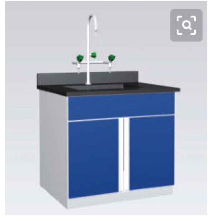 客户需求:客户需求:1、柜体落地式,柜体深度550mm,料厚1.0 ;2、12.7mm理化板台面,双面边缘加厚,台面前沿下边开止水槽 ;3、柜体带有左、中、右,三个门,中间门为固定门,左右柜门安装三级管理锁 4、不锈钢铰链,铰链开启角度不小于100度,关闭角小于8度时自动关闭 5、M12可调节脚,可调范围不小于50MM 6、暗藏一体成型扣手;7、水池柜后背,底板均留有上下水预留孔;8、桌面一侧开孔,安装pp水槽及三口试验龙头
