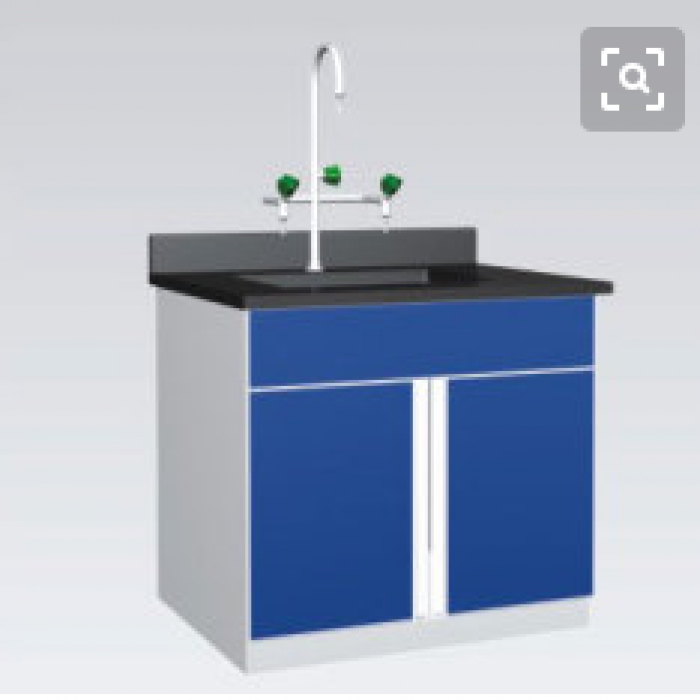 客户需求:客户需求:1、柜体落地式,柜体深度550mm,料厚1.0 ;2、12.7mm理化板台面,双面边缘加厚,台面前沿下边开止水槽 ;3、柜体带有左、中、右,三个门,中间门为固定门,左右柜门安装三级管理锁 4、不锈钢铰链,铰链开启角度不小于100度,关闭角小于8度时自动关闭 5、M12可调节脚,可调范围不小于50MM 6、暗藏一体成型扣手;7、水池柜后背,底板均留有上下水预留孔;8、桌面开孔,用于安装相匹配pp水槽及三口试验龙头