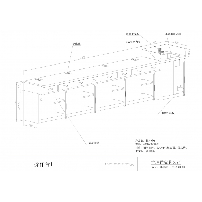 7111917,尺寸:4000*630*800,材质:钢制+实芯理化板,颜色:浅灰+墨绿