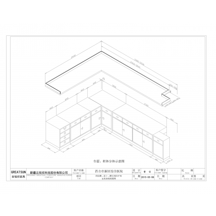 7111941,尺寸:3330*2440*880,材质:钢制1.0mm柜体,12mm厚人造石英石,颜色:浅灰、墨绿