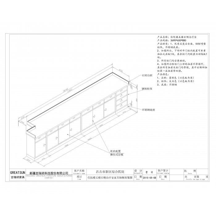 7111952,尺寸:3690*650*880,材质:钢制1.0mm柜体,12mm厚人造石英石,颜色:浅灰、墨绿