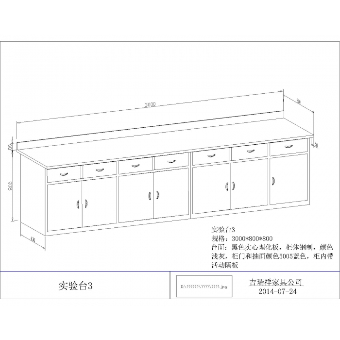 7111964,尺寸:3000*800*800,材质:实心理化板+钢制,颜色:黑色+浅灰+5005蓝