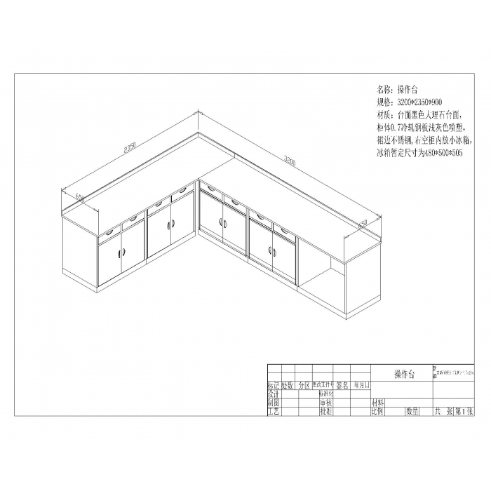 客户需求:大理石为人造大理石,钢柜颜色为浅灰,裙边为不锈钢,柜子里统一配置一层隔板