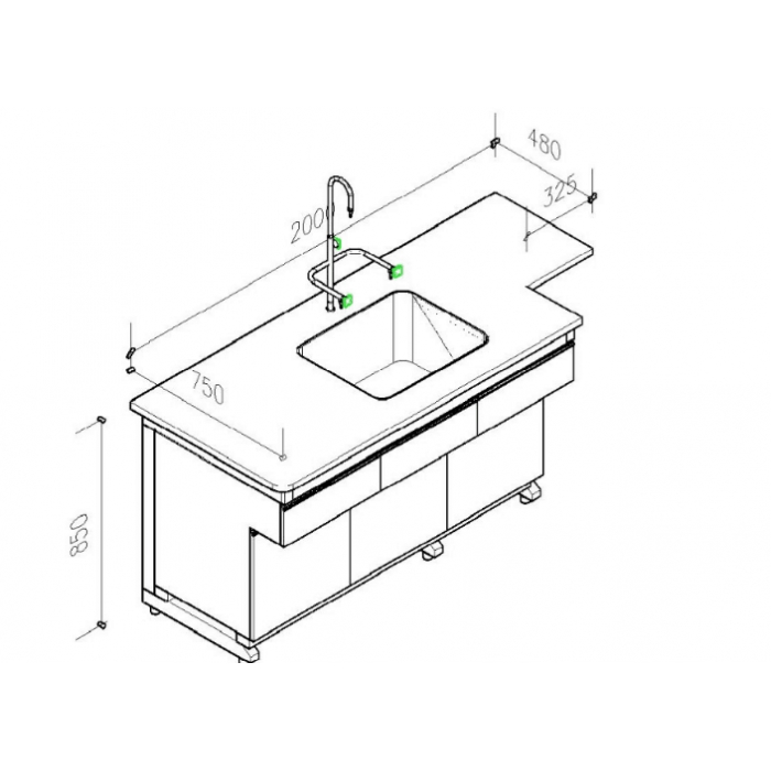 7112947,尺寸:2000*750*850,材质:黑色实芯理化板,钢制桌架,蓝色门板和抽面,灰白色柜体,PP水盆,水嘴,洗眼器,颜色:黑色桌面、蓝色门板抽面、灰色柜体