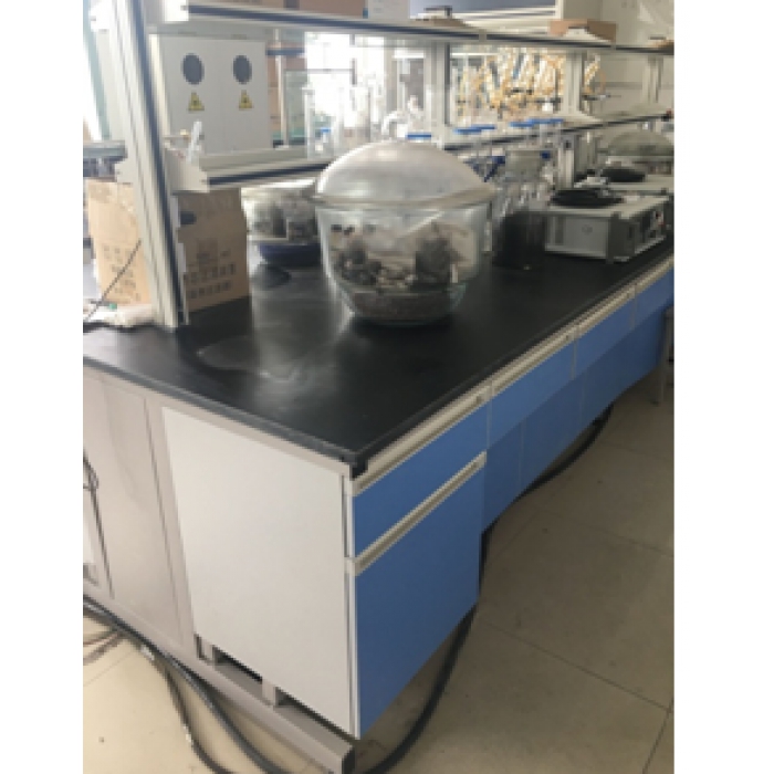 7112954,尺寸:2000*750*850,材质:实芯理化板+钢木,颜色:墨绿台面+浅灰柜体+天蓝抽屉柜门