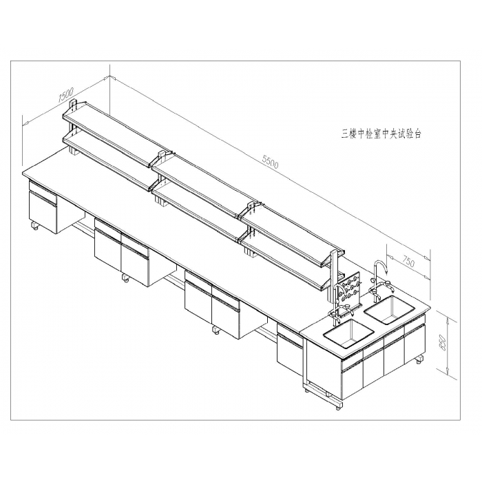 客户需求:带试剂架、插座、水嘴、水盆、试管架