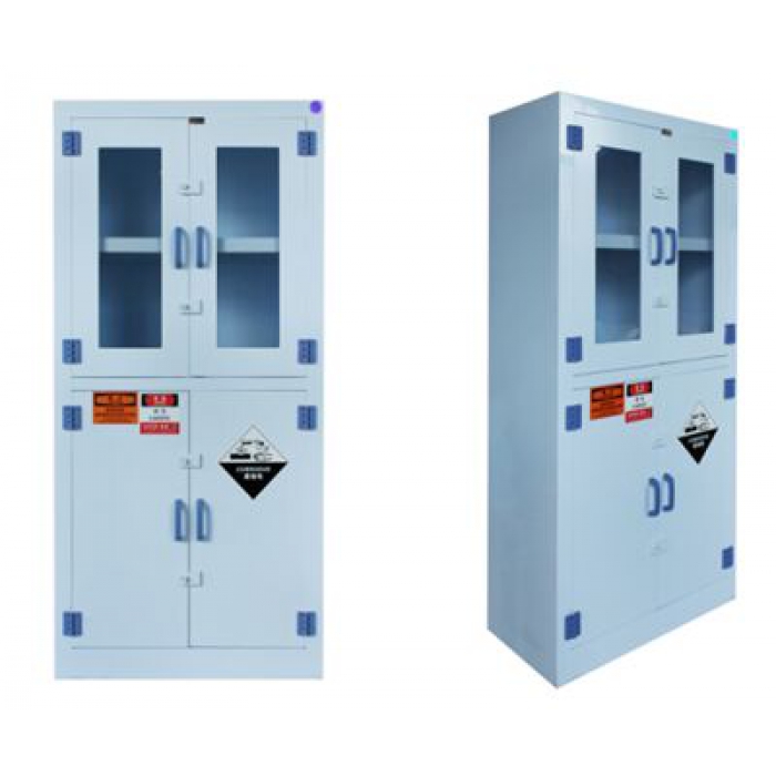 客户需求:上下双锁。可调层板:6块,柜体:采用瓷白色PP(聚丙烯)板制作,柜门:采用15mm贴膜PP(聚丙烯)板制作,桥式把手:采用耐酸碱PP(聚丙烯)材质,耐腐蚀性能好。铰链:采用经射出成型的PP(聚丙烯)材料制成,警示标签:柜门贴有醒目的“腐蚀性”警示标示,提醒周围人群注意安全。 柜顶部中间开有φ160mm的出风口,柜顶风口内置一个AC220V 50HZ 0.18A轴流风机,最大风量326m3/h,转速2550转/min,环境温度(-10-+70)摄氏度,无火花静电,控制开关设置柜体顶部的右上角,当风机开机前要把柜门下面进风口推置打开状态。自带锁具和钥匙 铭安