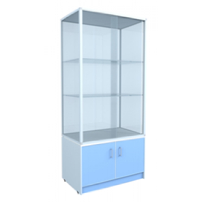 7612997,尺寸:1000*450*2000,材质:柜体结构:铝合金框架结构。上部高1200mm,四面为5mm厚透明白玻镶嵌,正面为金属包边白玻推拉门设计,内部三层8mm厚钢化玻璃活动隔层;下部橱柜高为800mm,板式镶装5mm厚玻璃对开门。不锈钢C型拉手。脚垫:采用特制模具优质注塑脚垫,高度为2.5cm,高度可调,可有效防潮 框架:采用模具成型铝型材(双槽≥38×38mm、单槽≥38×28mm,厚度≥1.2mm),柜体间转角将根据产品内部结构之差异,采用模具连插件连接,使整体框架结构更为合理,承重性强;铝型材表面经电泳、静电粉沫喷涂处理,具有耐腐蚀、防火,颜色:蓝色柜门