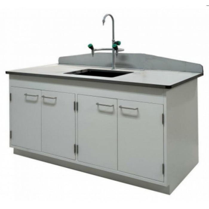 客户需求:柜体采用1.0mm冷轧钢板,台面采用理化板,带c字型不锈钢拉手,合页采用实验室专用不锈钢合页,带pp水槽及三口水嘴;