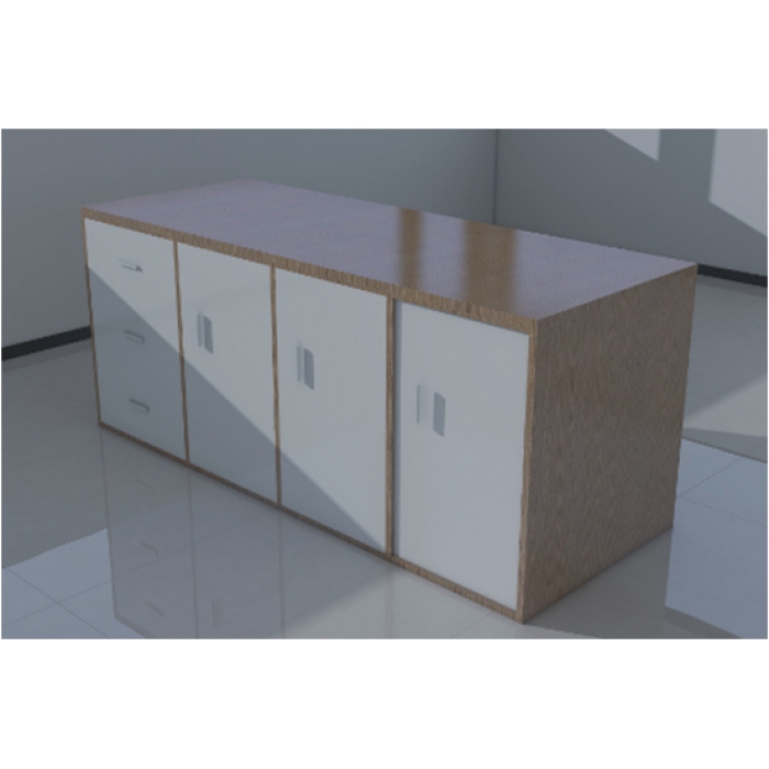 客户需求:1.柜门及抽屉门采用晨曦白,其余部分采用新靓木。 2.桌面采用25板材,其余部分采用18板材。 3.每个柜门内需添加一块活动隔板,将柜内分为上下两层