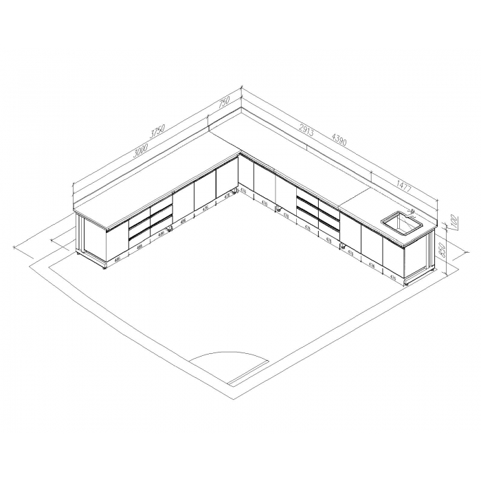 7712985,尺寸:4390*750*950/3000*750*950,材质:三聚氰胺板+钢制,颜色:浅灰+黑色