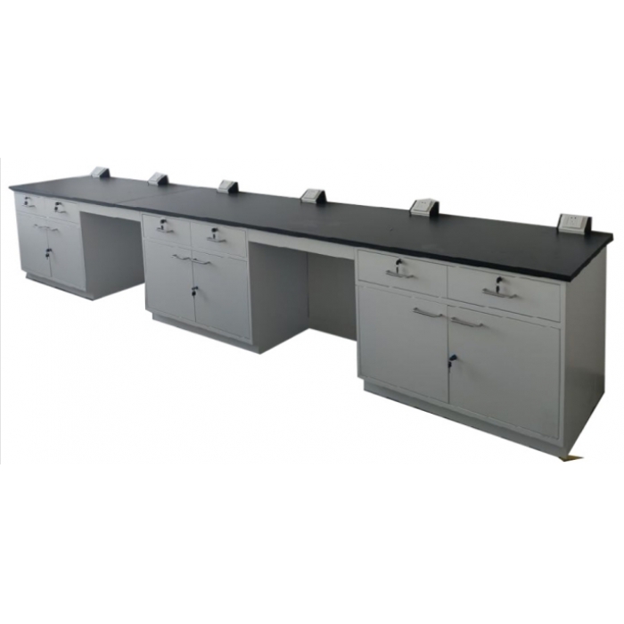 客户需求:2、结构要求 采用高强度钢材落地结构,确保实验台的稳定性和承重能力,同时便于清洁和维护。 3、颜色要求 实验室整体风格要求统一,实验台、柜体等实 验家具具体颜色待卖方中标后,一周内拿出整体配色方案,由使用方选定、确认后方可进行加工制造。 4、实验室等级金属柜总体性能及技术要求 (1)表面喷涂:环氧树酯粉末静电喷涂,涂层厚度≥50μm,提供优异的耐腐蚀性和美观度,确保表面平滑且耐用,在180度高温烘箱内固成光滑表面。喷涂后的金属表面抗一定的化学物质,能达到如下性能; (2)附着性能:交叉刻画(1.6mmX1.6mm),验证涂层与基材的牢固结合,没有掉漆。 (3)防腐性能:盐喷实验200 小时没有变化,证明其卓越的防腐能力。 (4)磨损性能:Taber 磨损实验100次循环不超过 5.5mg,确保长期使用下表面磨损轻微。 (5)硬度性能:表面硬度相当于甚至好于4H铅笔,抵抗日常划痕和磨损。 (6)防潮性能:华氏 100 度、饱和湿度情况下,可以抵抗1000小时的暴露,保持性能稳定。 (7)湿度性能:热水45 度角冲淋5分钟没有变化。水持续浸湿100小时没有变化,确保在潮湿环境中也能正常使用。 (8)耐腐蚀及耐酸碱功能:满足抗腐蚀功能,耐指定的 48 种化学试剂,漆面结果是等级3的情况不应多于4个,满足特定实验需求。 (9)落地式底柜柜体荷重性能检测:≥900公斤,确保存放重物时的稳定性; (10)落地式底柜柜体集中荷重性能检测:≥90 公斤; (11)框架式底座框架荷重性能检测:≥270 公斤,支撑整个实验台结构; (12)门铰链承重性能检测:≥90公斤;抽屉静载承重性能检测:≥68kg,抽屉开关5万次,确保长期使用下的耐用性;抽屉循环性能打开和关闭加载抽屉的推拉力应不超过3.63kg,便于操作; (13)底柜层板荷重性能检测:≥90公斤/平方,满足存放各种实验器材和试剂的需求。 (14)台面:边台、中央台、演示台等实验操作台面选用≥15mm厚洁菌抗倍特板,具有优异的抗菌、耐磨、耐酸碱等性能,适合各种实验操作。 5.台面材料符合以下技术参数及要求: (1)抗菌活性值 :依据抗菌加工制品-抗菌性试验方法和抗菌效果的测定检测,检测用菌抗菌活性值:大肠杆菌≥5.1、金黄色葡萄球菌 ≥4.7、铜绿假单胞菌≥2.2、肺炎克雷伯氏菌 ≥6.3,且抗菌率均>99%,确保了台面在使用过程中能有效抑制细菌滋生,保障实验环境的安全; (2)长霉等级:依据合成高分子材料防霉性的测定检测,检测用菌包含:巴西曲霉、球毛 壳霉、绳状青霉、绿色木霉、出芽短梗霉,检测结果:28 天长霉等级为0级,霉菌生长面积 0%,可体现了台面材料优异的防霉性能; (3)燃烧性能:依据GB8624-2012,符合建筑材料 B1(B-S1,d0)级规定的要求,即难燃材料,能在一定程度上阻止火势蔓延; (4)物理性能:依据 GB/T7911-2013 测试,耐龟裂、耐光色牢度为5级确保台面长期使用下保持良好的外观和性能,耐磨性能、耐划痕不低于3级,弯曲强度≥130Mpa、弯曲弹性模量≥13600Mpa,保证台面的结构强度;依据 GB18580-2017检验测试,甲醛释放量≤0.036mg/m3 ,释放率均低于国家标准限值,保障室内空气质量; (5)TVOC(总挥发性有机化合物)24 小时释放率< 25 微克/m2 ·h。 6、下柜 (1)柜体:采用≥1.0mm 冷轧钢板,表面平整光滑,无凸起,不易损伤,各钢件经除锈、酸洗、磷化等工序,经防锈处理,结构稳定,结实耐用,表面经过除油除锈磷化后高温静电喷塑;确保结构强度和承重能力,所有钣金的表面接缝均应满焊,表面接缝满焊并打磨平整,保持平滑表面,易于清洁。柜体内有层板上下调节孔,每个底柜设活动层板一块,增加强度和稳定性,同时抽屉设计方便拆卸及灵活规划空间使用。 (2)抽屉:采用≥1.0mm 冷轧钢板,确保结构强度和承重能力,抽屉面板为双层结构,抽屉能抽出≥330mm,抽屉设计应方便拆卸。 (3)门板:采用≥1.0mm 冷轧钢板,门板为双层结构,内侧设有防撞橡胶垫。 (4)活动层板:采用≥1.0mm冷轧钢板,层板边缘应平顺不割手,层板上下调节间距每格应≤20mm。 (5)柜体深度:≥520mm,高度≥850mm ,满足大多数实验室存储和操作需求。 (6)背板:底柜后方应具备容易拆装的活动背板,便于安装和维护。 (7)服务通道:中央台背对背柜体中间空档及靠边桌柜体与墙面中间空档有一个服务通道距离,方便布设电、水等管线,实现隐藏式设计。 (8)座位空间:其上以横档连接,如果有安装键盘需求则以水平键盘抽屉式连接件与两侧柜体单元上端连接,其下方空档应以可拆装式封板遮挡,既美观又实用。 (9)合页:采用直径≥5mm304 不锈钢棒隐藏式不外露合页,防腐性能优越,承重性能强,门开启任何角度均可承重≥60kg,开启角度≥135 度,启闭无噪声。 (10)滑轨:采用高承载导轨,不低于1.8mm冷轧钢板模具冲压成型制作,表面经环氧树脂粉末静电喷涂,表面平整光滑,无凸起,不易损伤,各钢件经除锈、酸洗、磷化等工序,经防锈处理,结构稳定,结实耐用,表面经过除油除锈磷化后高温静电喷塑;滑轨抽屉能抽出至少 330mm;抽屉的滚轮采用尼龙包边的滚球轴承,不得使用三节导轨,延长使用寿命。 (11)把手:采用高强度不锈钢把手或一字型;抽屉宽度超过600mm 及以上时应配置两只把手,材质坚固,设计合理,便于操作。 (12)地脚:底柜带四个可调镀锌钢或不锈钢 螺丝结构支撑脚,带橡胶包覆,可由专用工具调节调节水平及高度,最大可调节 30mm,调节方便且稳固。 (13)门扣组:采用塑料材质的滚轮,镀锌钢材质的滚轮支架;须以钢制尖头镀锌自攻螺丝与柜体及门板固定。 (14)