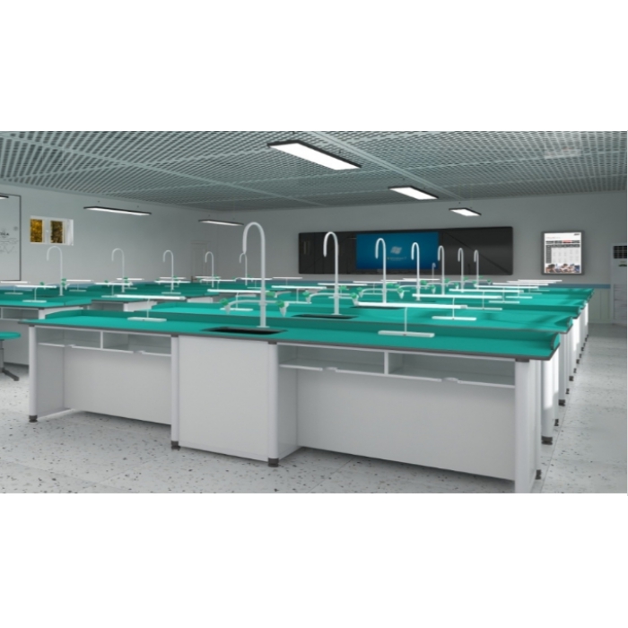 客户需求:备注:如图,不要中间的水池柜。1、规格:2400*600*760mm 2、台面:采用国内12.7mm厚实芯(双面)理化板台面,台面边缘用同质材料板双层加厚。台身铝合金框架结构,台身立柱铝合金直径50mm 壁厚1.2mm 横梁30*28 壁厚1.2mm。。铝合金表面静电喷塑,连接件为ABS工程塑料连接件,接缝严密,无晃动现象,桌架整体耐腐蚀、防火、防潮、稳固耐用; 3、脚垫:采用注塑加不锈钢模具可调脚垫,可有效防潮。