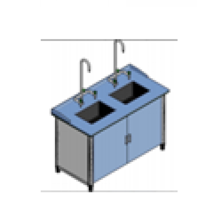 结构:铝镁结构,下为掩门式储物柜,内嵌5mm厚PP化验水槽(规格:内380×270×190mm)与铜质外包PP的防腐蚀、耐酸碱的实验室专用高压三联水嘴(一高二低)。