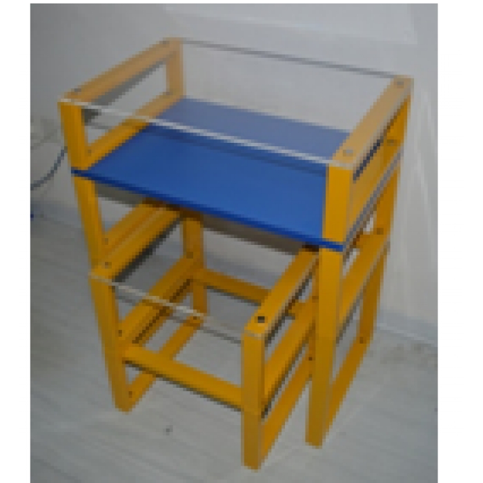 7799991,尺寸:600*400*750,材质:材质:钢质框架,木质衬板,厚度不低于国标1.2cm纯精料亚克力面板。采用环保、安全、透明的亚克力材料作为桌面,使学生在做实验的时候能够方便地看到桌面下方存放的实验器材和教材。,颜色:榉木色