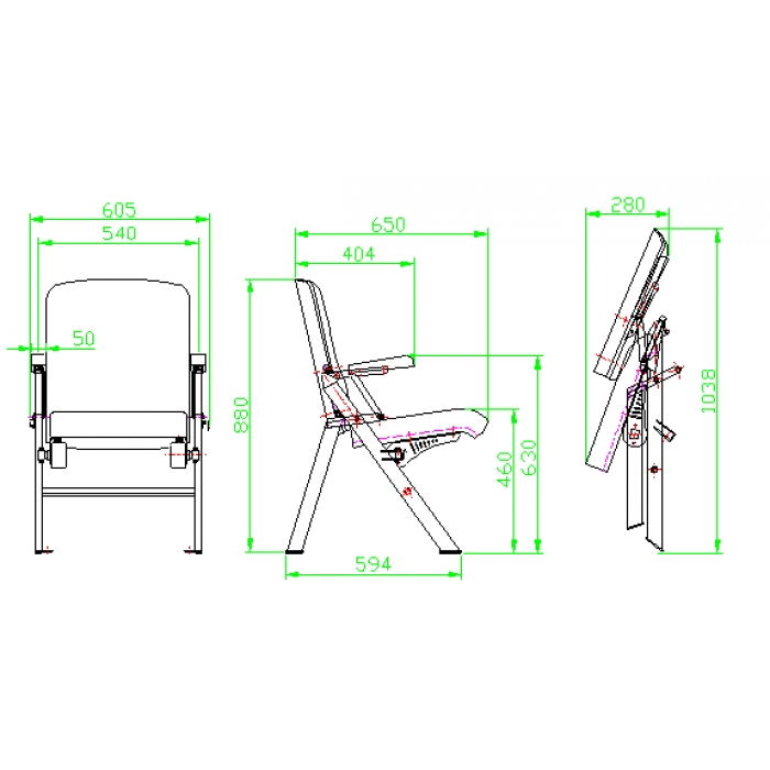 8199957,尺寸:座椅基本中心距为540mm,椅宽605mm,基本座高460mm ,基本椅深650mm,基本椅高为880mm,折叠后厚度为280mm,高度为1038mm。,材质:钢制椅架,优质阻燃布绒, 座椅扶手为红榉实木。,颜色:黑色、红色