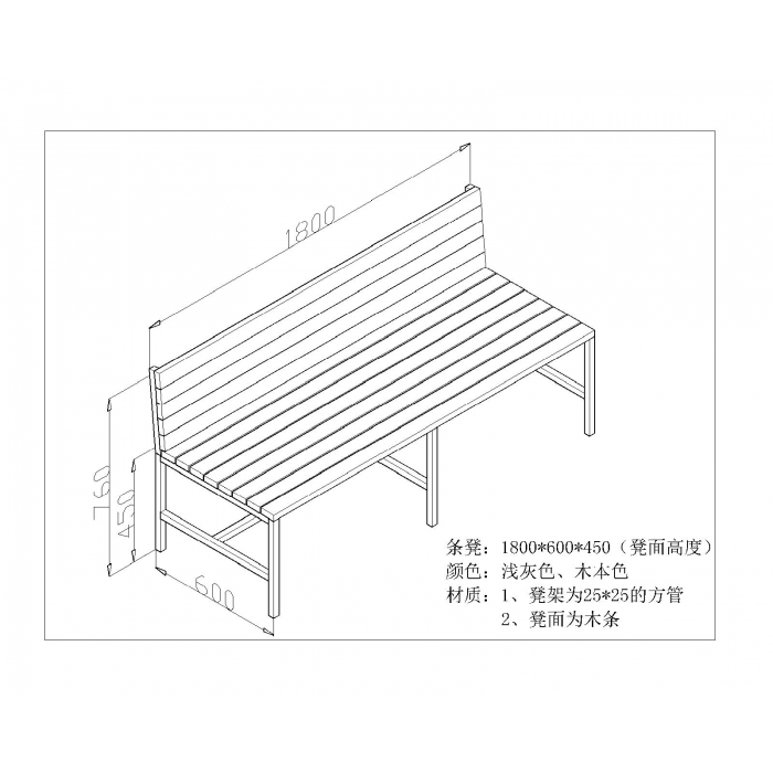 8411939,尺寸:1800*600*450,材质:钢制凳架,实木凳面。,颜色:浅灰色+木本色
