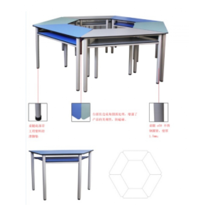 客户需求:1、结构:梯形可拼接教学桌, 梯形短边 700mm,长边1400mm,宽500m;