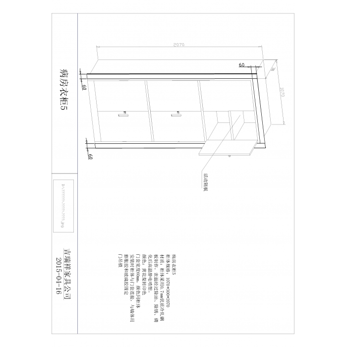 客户需求:"衣柜带边套尺寸1090*300*2130 (边套宽60mm)"