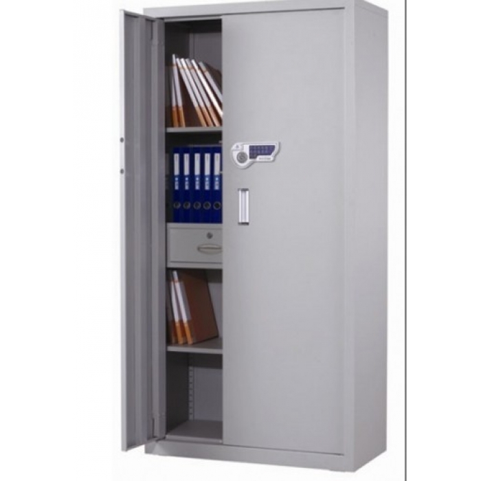 客户需求:料厚需为0.8mm; 柜门配置两把锁:密码锁、十字防盗锁各一; 柜内抽屉各配置两把锁。