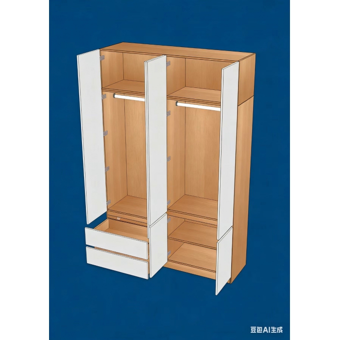 客户需求:活动层板做一档调节,衣柜把手按照如图所示。采用E0级板材,18mm,所有柜门采用高光板,